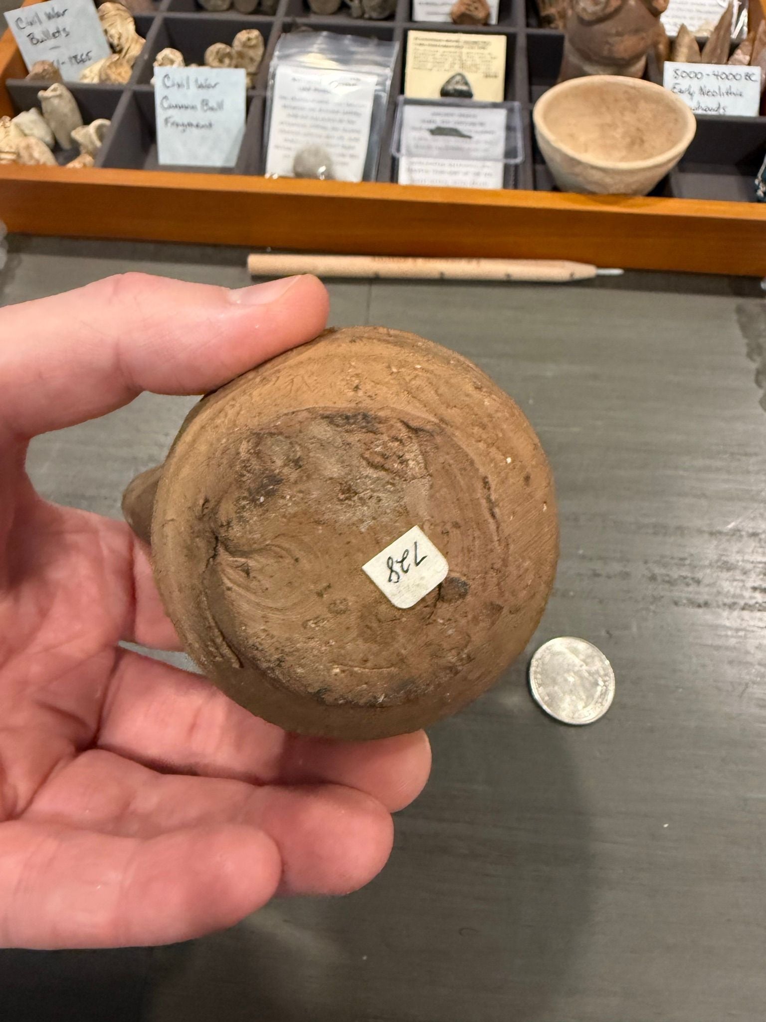 The vessel displays natural surface wear, mineral deposits, and age-consistent patina developed over millennia. Structurally sound with no modern repairs observed. Minor surface wear and small imperfections are consistent with age and historical use.