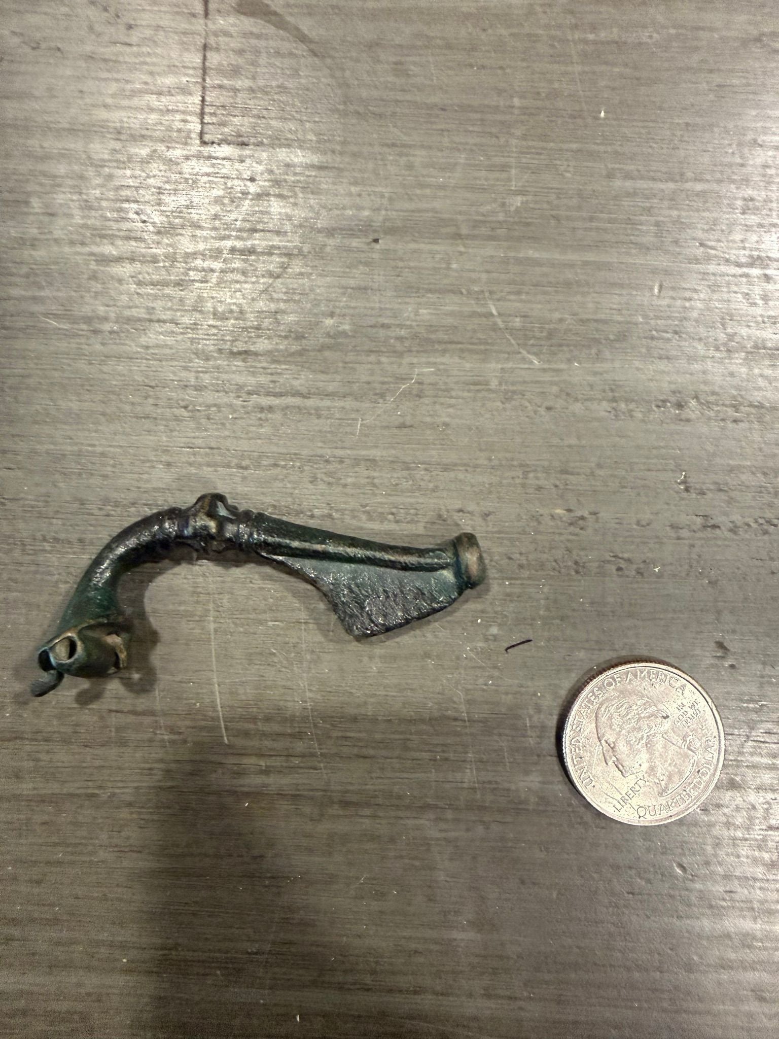 Authentic Roman bronze fibula dating to approximately the 1st–3rd century CE. This curved brooch was used to fasten garments such as cloaks or tunics and represents a common yet highly collectible form of Roman personal adornment.